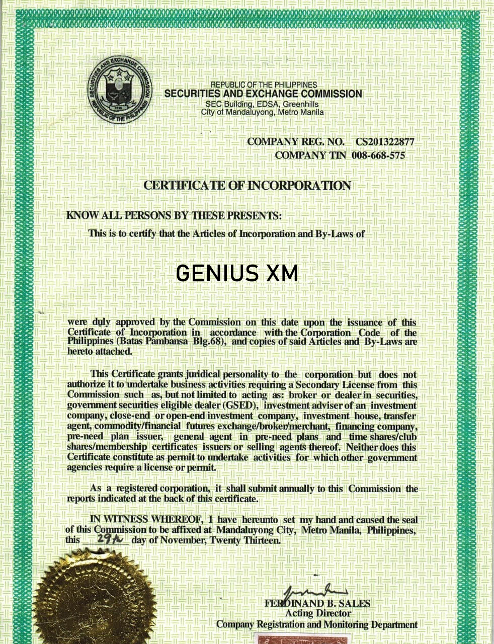 genius xm LTD is a legal investment company incorporated in the United Kingdom.
